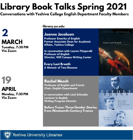 Library Book Talks, Spring 2021: Conversations with Yeshiva College English Department Faculty Members