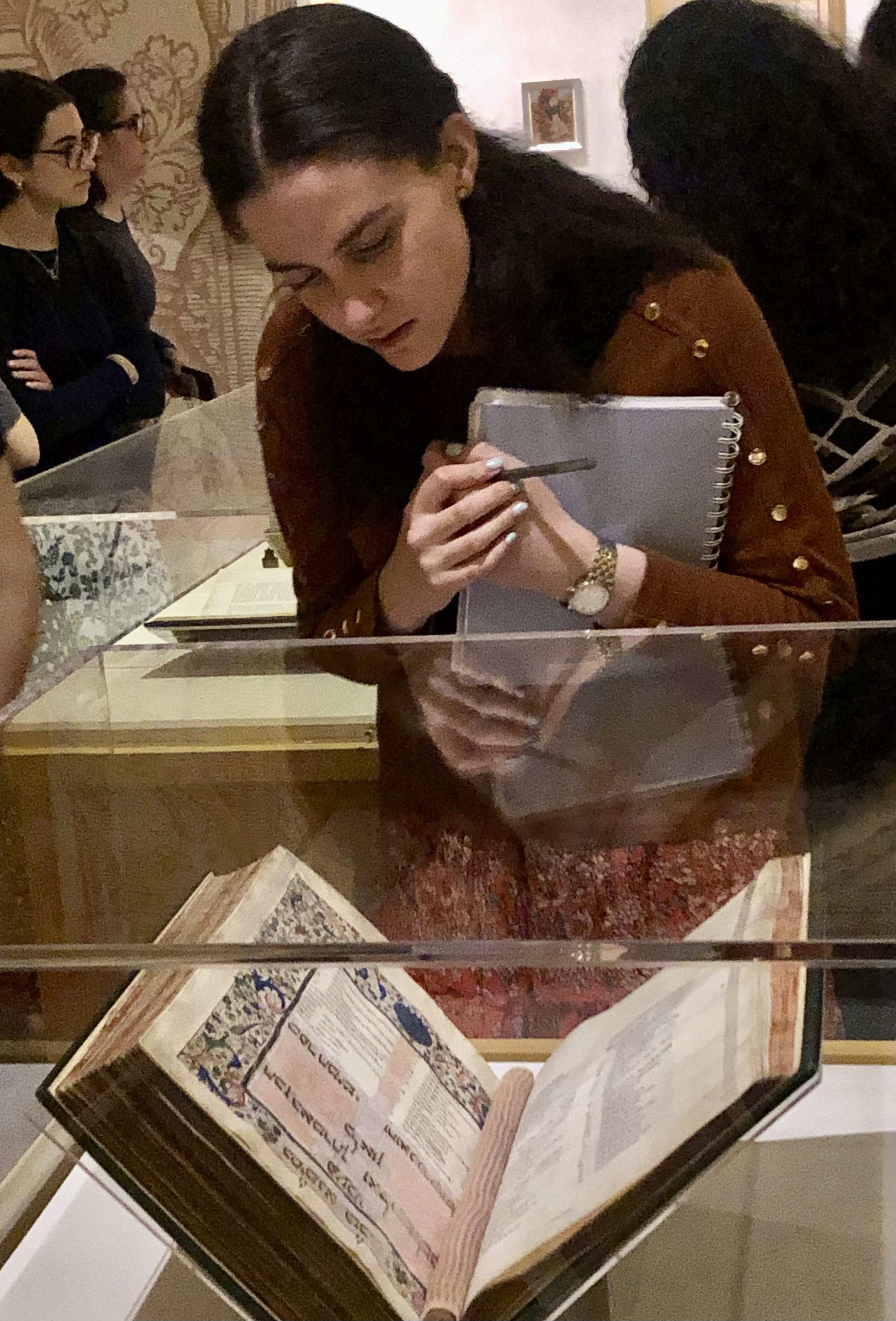 In early September, students participated in guided tours of the exhibit, "The Golden Path: Maimonides Across Eight Centuries," at the YU Museum. The exhibit explores Maimonides' life and impact across centuries, continents, and cultures through rare manuscripts and books. Highlights of the tour included seeing manuscripts in Maimonides’ own handwriting, a carved 11th-century door to the Torah ark from Cairo’s Ben Ezra Synagogue and beautifully illuminated medieval manuscripts.